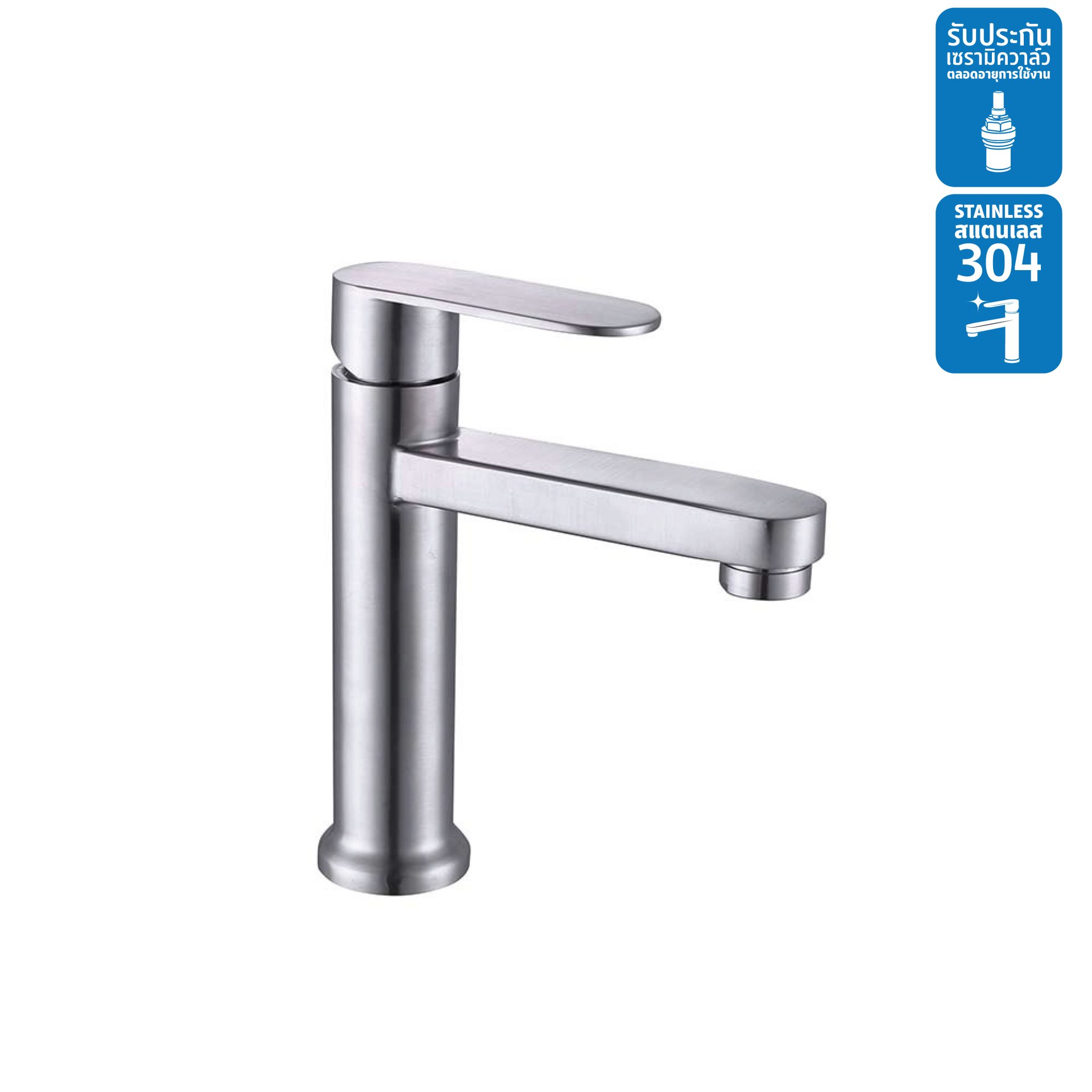 ก๊อกอ่างล้างหน้าน้ำเย็นด้ามโยก สแตนเลส 304