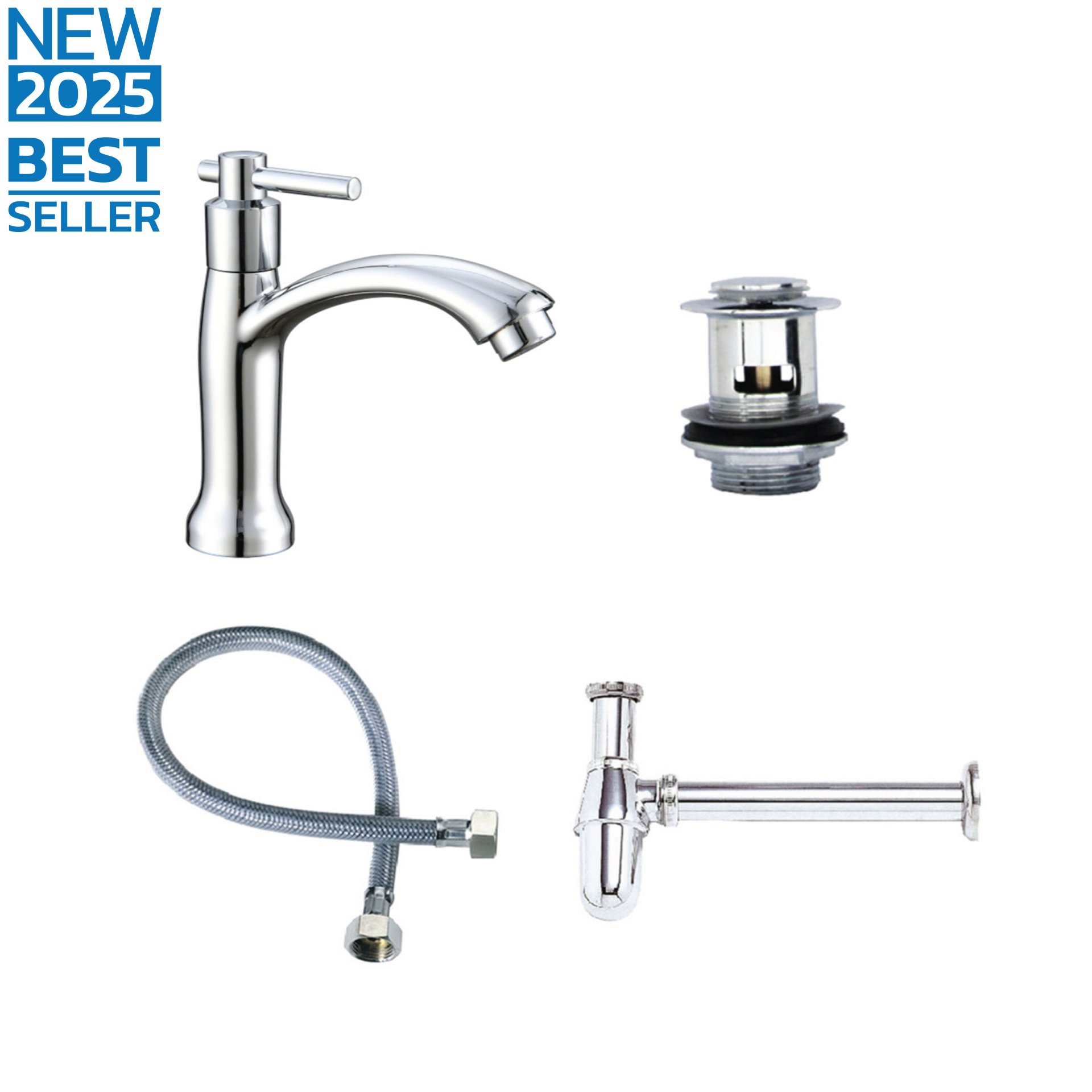 สะดวกต่อการติดตั้งมาในรูปแบบยกเซ็ท 4 IN 1  ก๊อกน้ำ สะดืออ่าง สายน้ำดี ท่อน้ำทิ้ง วัสดุแข็งแรงทนทาน